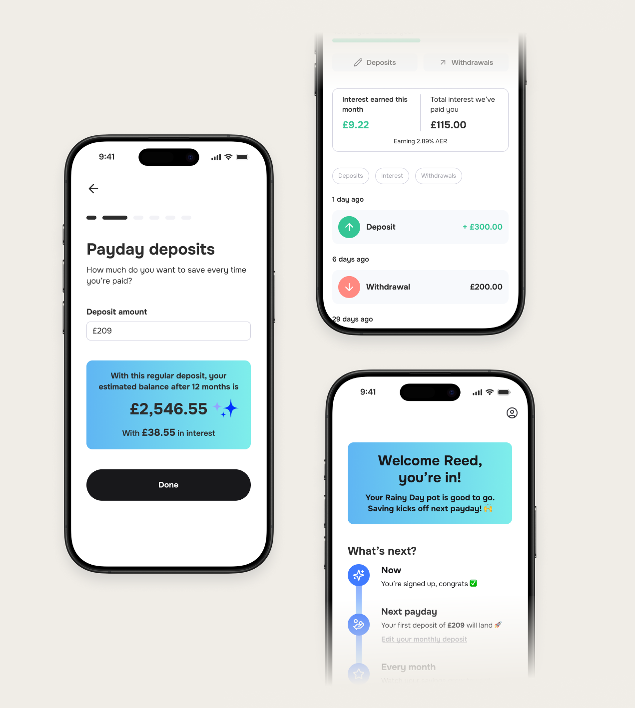 Each pay run you’ll get one report: deduct the savings from each employee's net pay, then send one extra payment covering all employees' savings. We handle the rest. Oh, and the money is always FSCS-protected.